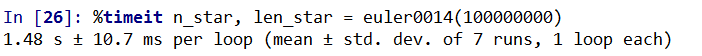 1.48秒, 速度接近于Julia版的, 我已经很满意了.