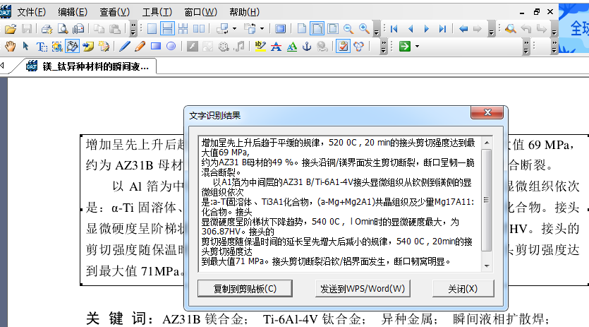 可以选中文本部分并将其识别成文字并发送到Word文档中。但是这种方式每次只能最对操作一页内容,如果要将全部CAJ文档的内容都识别成Word文字就无法适用了。