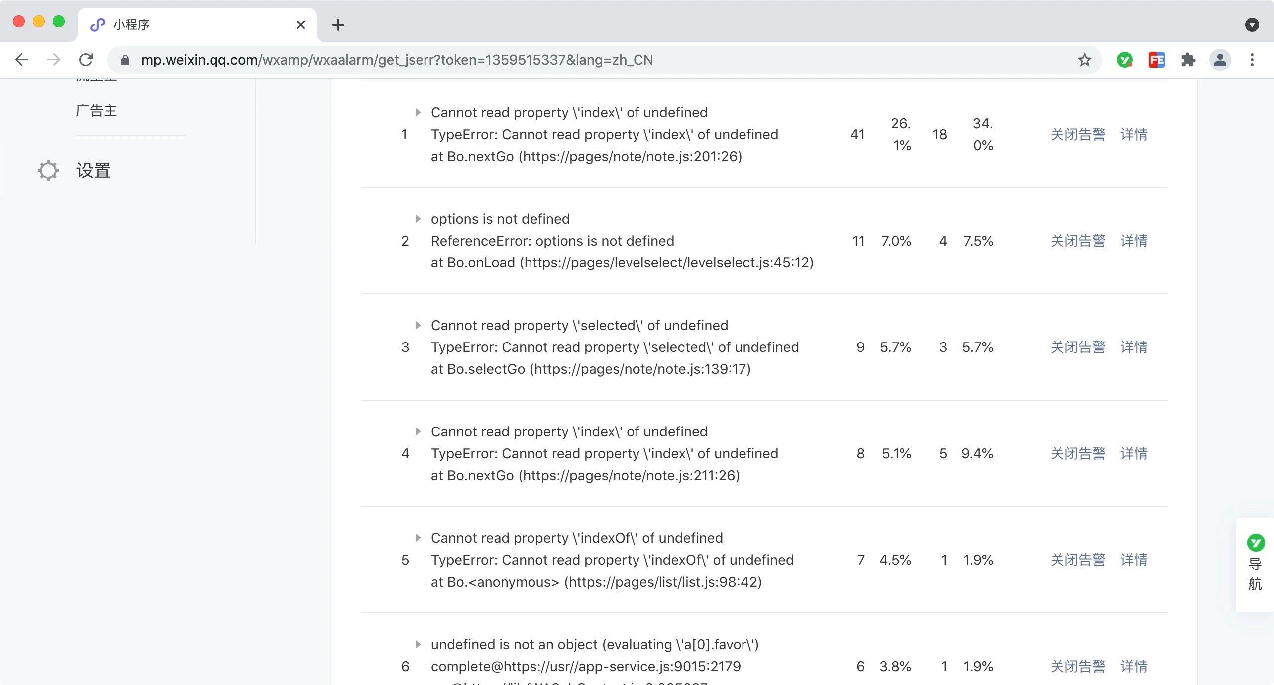 因为我发现这个小程序虽然上线一年了,但是还多少有些报错信息,我想趁暑假把这块清零,具体截图如下所示