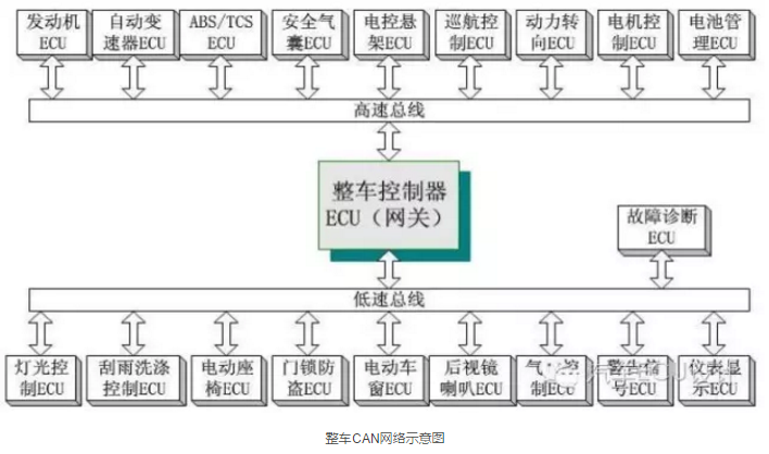 CAN总线(Controller Area Network,控制器局域网络)由德国博世公司于上世纪80年代提出,近20年来,随着CAN总线在工业测控与汽车领域的普及,CAN网络技术不断优化,取得了长足发展。如今CAN总线已经成为了汽车上不可或缺的重要环节,ECU内部的CAN总线开发也占到了ECU开发中的很大分量。在汽车中为了满足车载系统的不同要求,主要采用高速CAN和低速CAN。这两者以不同的总线速率工作以获得最佳的性价比,在两条总线之间采用CAN网关进行连接。
