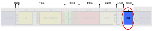 由一串7个隐性位组成,表示报文帧的结束。