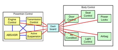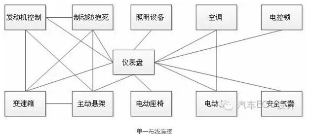 汽车电子设备的不断增多,对汽车上的线束分布以及信息共享与交流提出了更高的要求。传统的电气系统往往采用单一连接的方式通信,这必将带来线束的冗余以及维修的成本的提高。