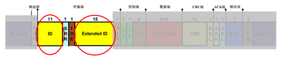 仲裁段除了报文ID外,还有RTR, IDE, SRR位。