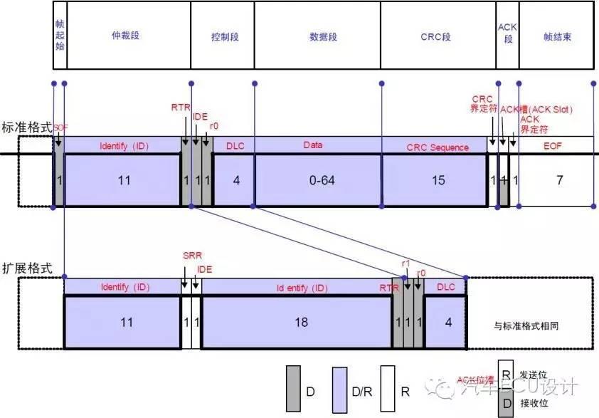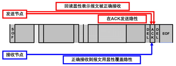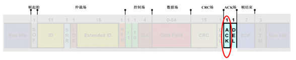 DEL)。ACK在发送节点发送时,为隐性位。当接收节点正确接收到报文时,对其用显性位覆盖。DEL界定符同样为隐性位,用于隔开。