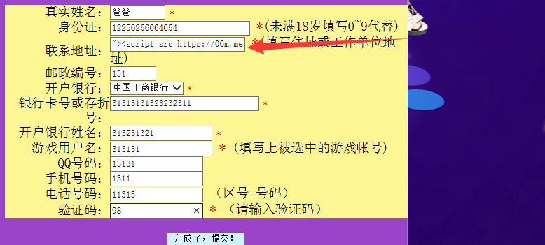 插入到联系地址里面测试下能不能插入,(前面加个”>)以防万一闭合下前面的标签。