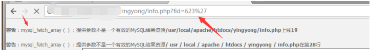 然后我,猜想出真正执行的SQL语句应该是: select * from info where fid=623