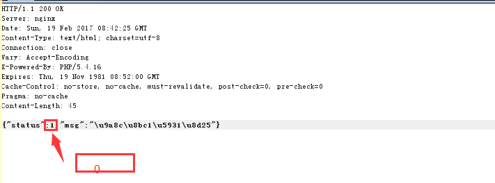 只要 status 等于0 它就跳转第二步,那么通过burp去修改它的 Response