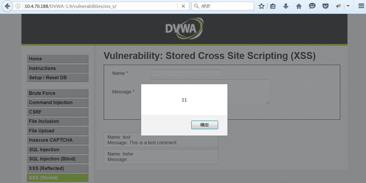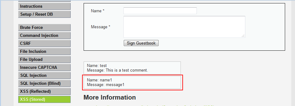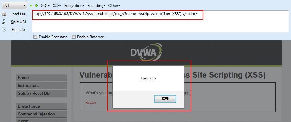 如果那name参数1修改成<script>alert("I am XSS")</script>,则显示结果: