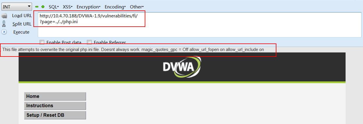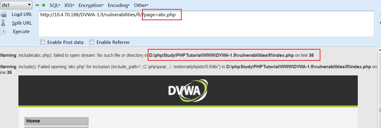 报错信息中,我们获取到文件的物理路径,可以利用该漏洞读取本地文件,如读取dvwa目录下的php.ini文件,将文件路径进行如下修改: