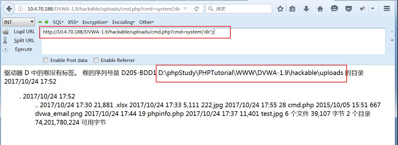 我们修改cmd参数为任意命令,如cmd= system(\'dir\'); ,显示如下: