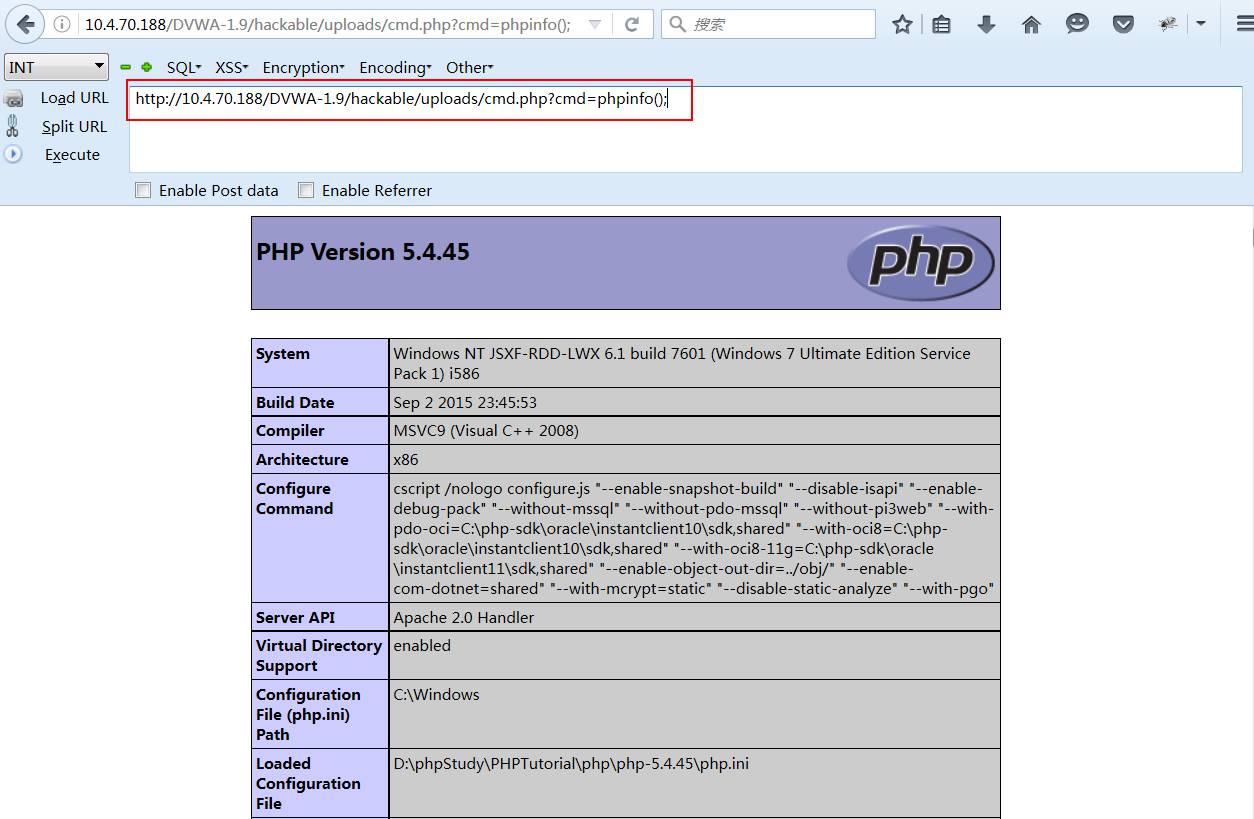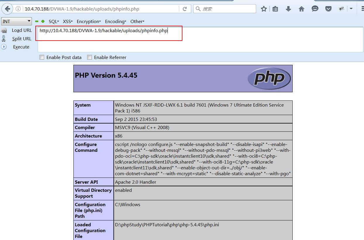 那么,我们写一个文件phpinfo.ini,内容为<?php phpinfo(); ?>,上传成功后,我们访问该文件显示: