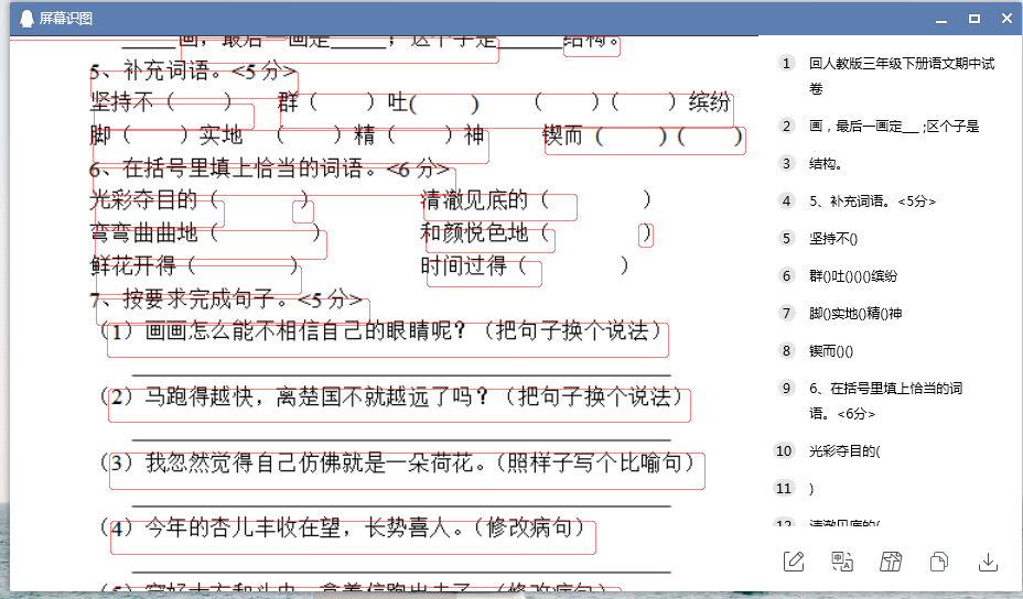 这里需要用到QQ截屏,一般快捷键是Ctrl+Alt+A,选择需要截取的文字区域部分后,点击“屏幕识别”工具,即可进行自动识别。不过这种方式对于识别后的排版一般会比较乱,而且一次最多只能截取一页,也不算太方便。