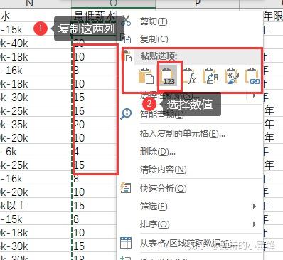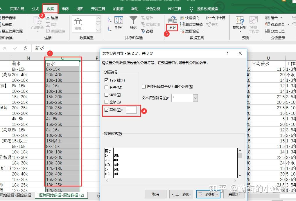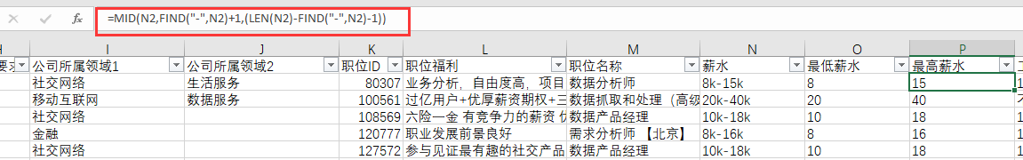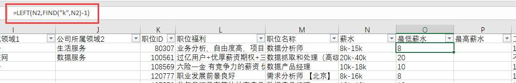 薪资一列是文本型,而且是区间形式,不太好利用后期的计算,因此需要一致化处理成数字格式的