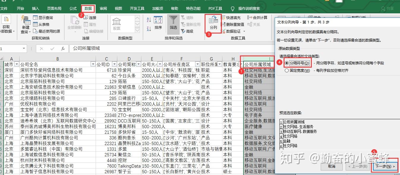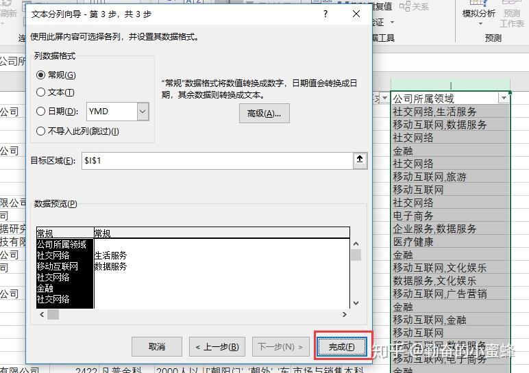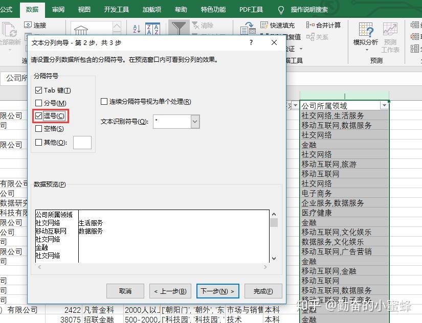 公司所属领域 一列存在1个或多个领域,中间逗号分隔,不利用后期分析,需要拆成多列