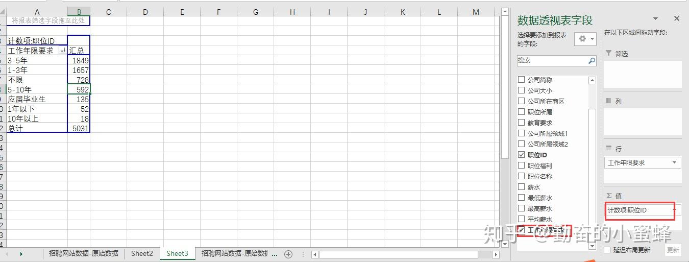 可以看出3-5年和1-3年的职位要求是比较多的,说明数据分析的岗位还是需要有一定的工作经验,但是也没有要求特别资深的,1-3年对于毕业一年的大学生还是很友好的。