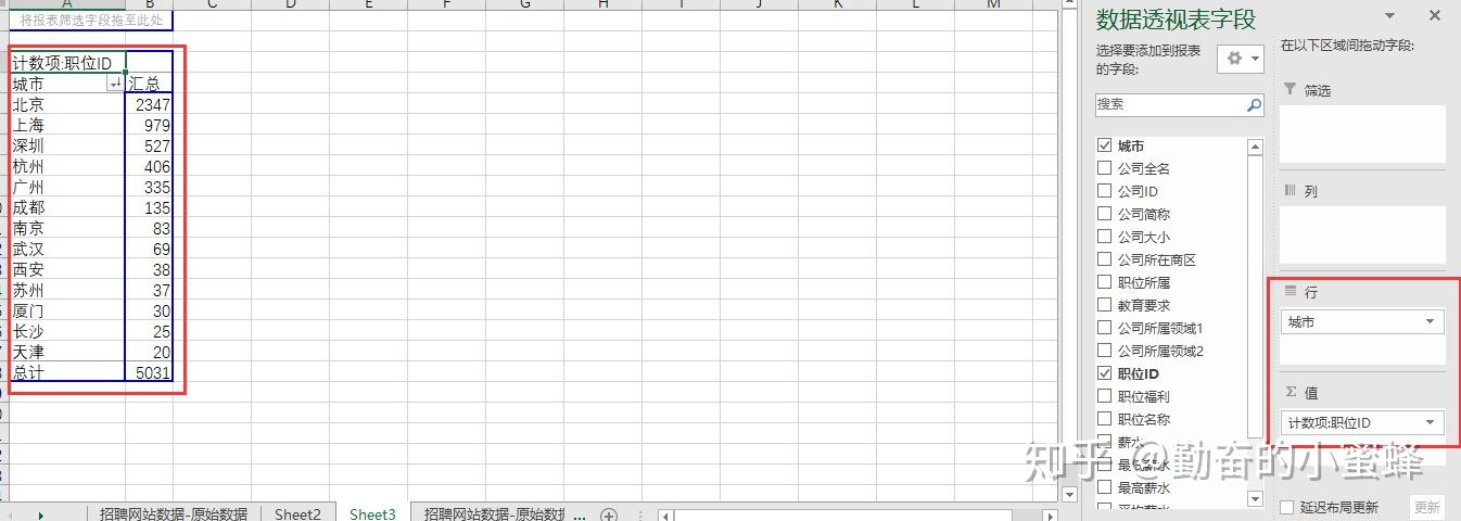 1.哪些城市数据分析工作需求量更大一些,也就是对城市进行分组计数