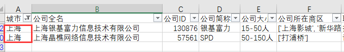 城市为文本内容,因此可以根据公司名称来判断是哪个城市的