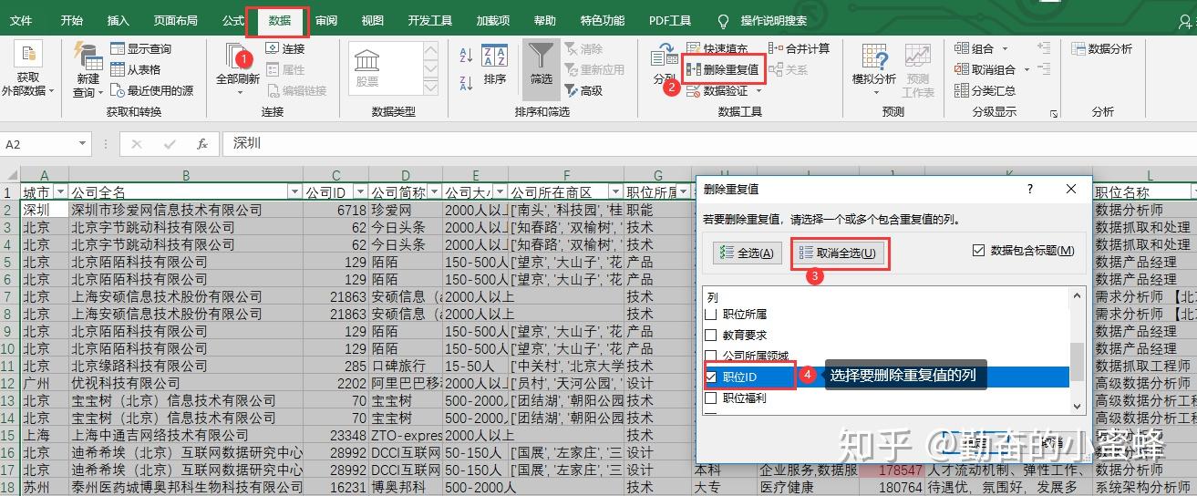 一个职位ID应该是唯一的,对职位ID进行删除重复值的操作