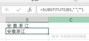 如图所示,substitute函数经常用来去掉文本之间的空格。