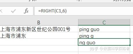 Right函数与left函数取反,用法相同。比如上例子:right(C1,6)