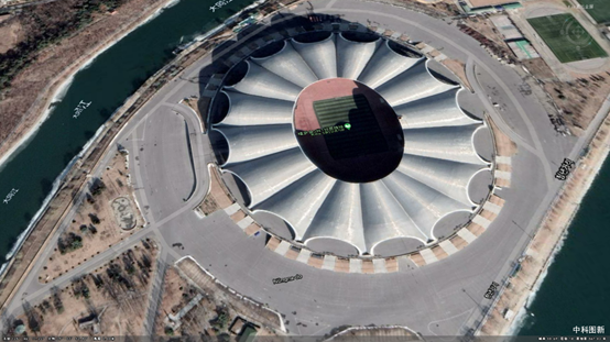 以上是 图新地球上打开的卫星地图上截取的分辨率约0.2米左右的卫星影像,基本上路边的树木绿化路面指示都可以查看很清晰。国内的清晰度相对于国外会稍微差一点,不过完全可以够用。再高清晰的就需要卫星现拍摄采集了。