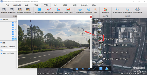 在LSV中,您可以创建已拍摄照片的照片轨迹,以便您可以更直观地查看与照片相对应的位置信息和拍摄照片的轨迹。