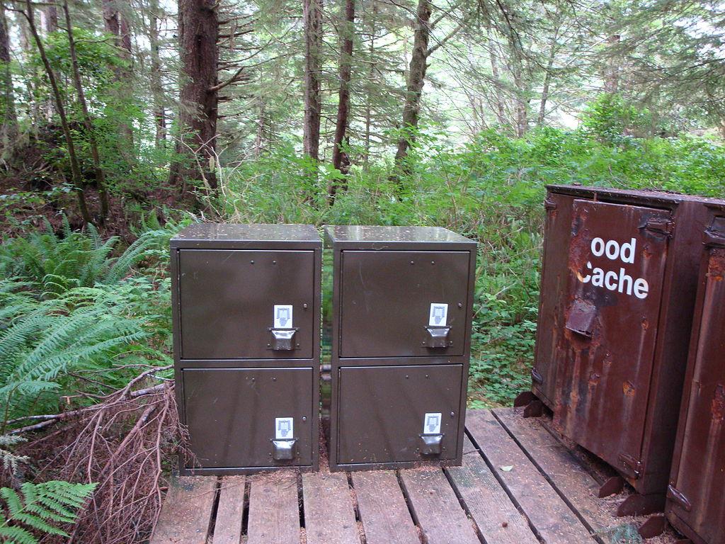 没错,就是一种保管箱。看到右边那个被锈掉的Food Cache没?这是部署在森林里的存应急物资的保管箱。功能是把你需要用的东西放在更容易拿到的地方。虽然常用准确翻译叫缓存,但个人认为台湾的翻译更好,叫快取。
