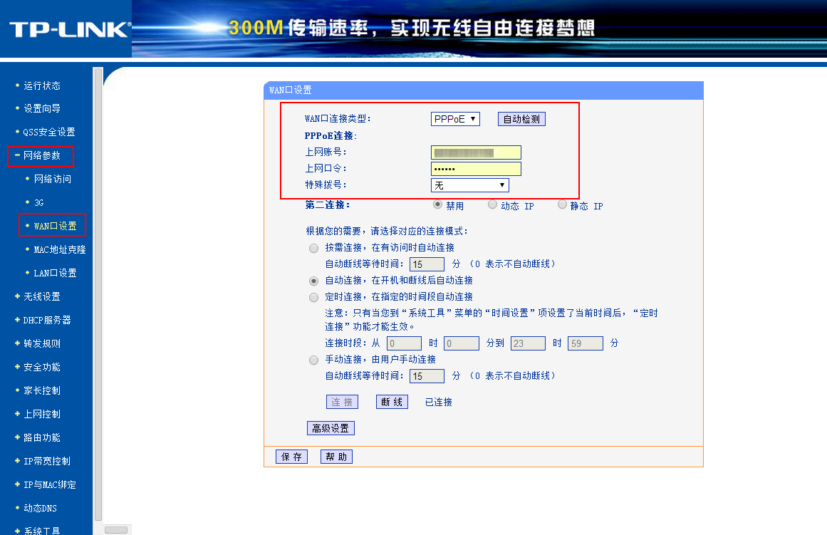如果没有,你可以登陆第二个路由器,在 网络参数 》WAN口设置 里面,选择你的连接模式(拨号上网就是 PPPoE ),填入用户账号和密码,设置自动拨号连接即可。