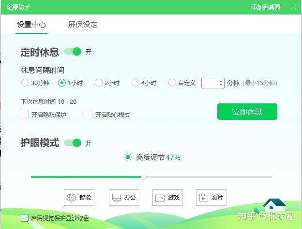在找到这个解决方法之前,我还特别下载了360。主要时用了它的健康助手,这个护眼模式下可以调节亮度色调,能起到一定的作用,如果不行也可以试试这个工具,不足之处就是这个工具没有单独安装包,只能下载360一起使用。