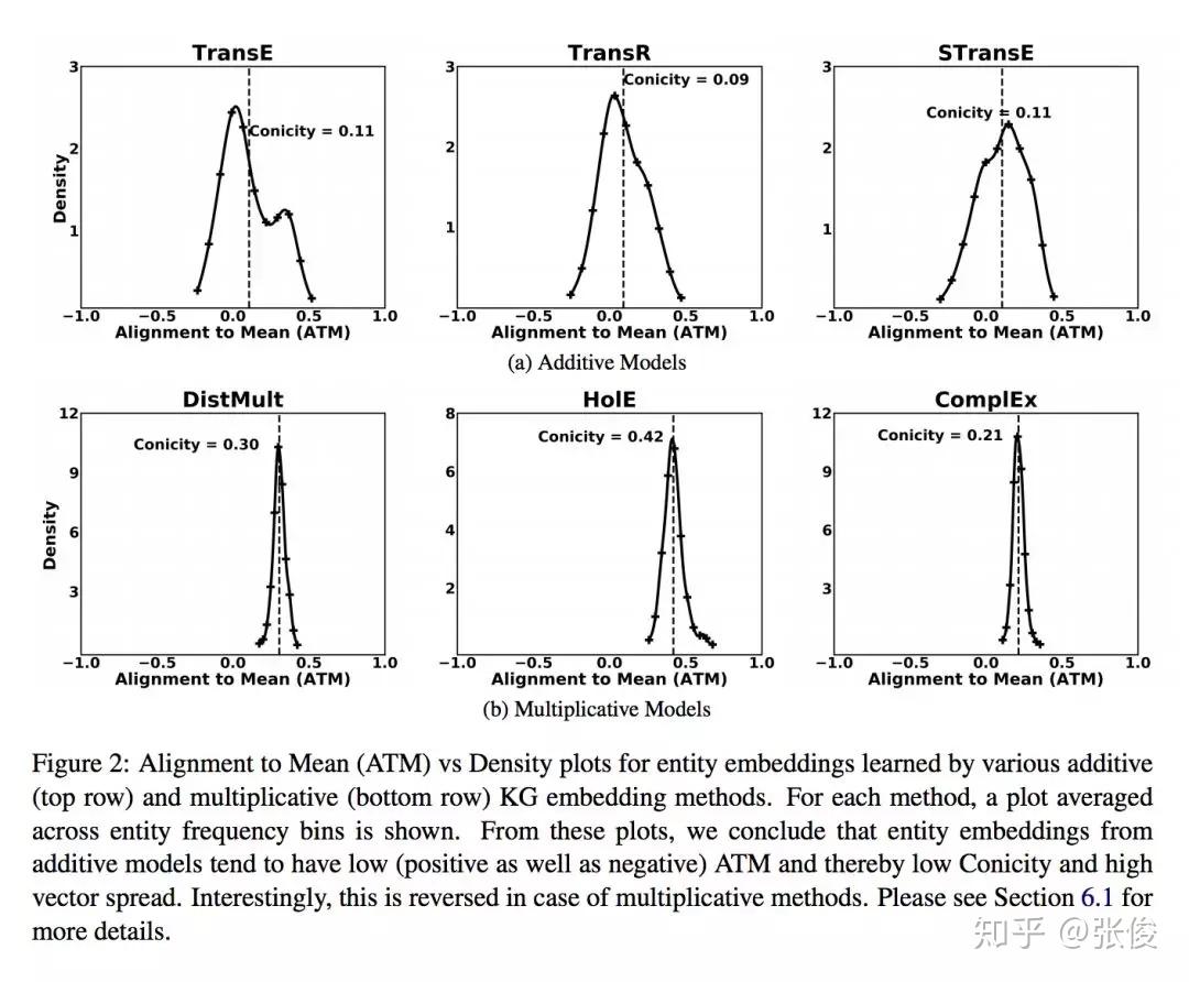 不同模型在实体向量的几何形状上存在明显差异。乘法模型的 ATM 值均为正值且向量分散度较低。加法模型此形成鲜明对比,加法模型的 ATM 值正负皆有且分布较为均衡,同时向量分散度较高。