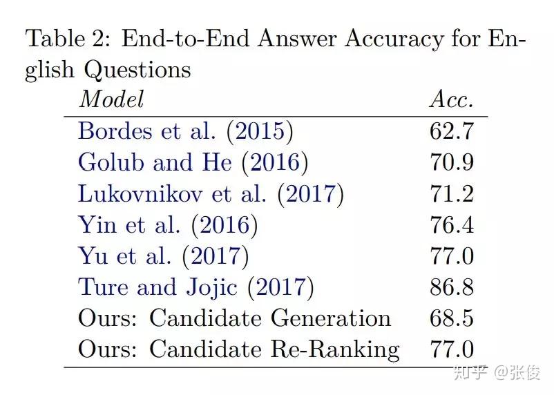 数据:SimpleQuestions (Bordes et al., 2015) dataset,75.9k/10.8k/21.7k training/validation/test。
