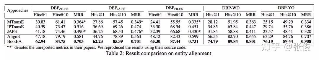 其二:基于知识嵌入的实体对齐往往依赖已有对齐作为训练数据,虽然有研究表示仅需少量对齐样本即可完成模型训练 [Chen et al. 2017],但有限的训练数据依然会影响知识嵌入的质量以及实体对齐准确性。