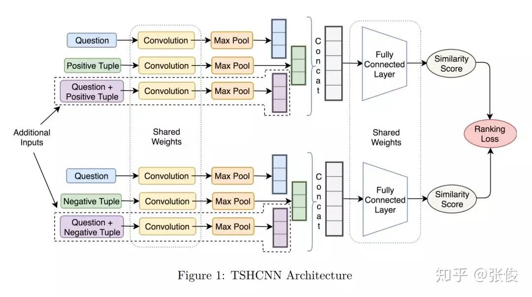 本文的主要工作就是设计了一个重排序模型 Triplet-Siamese-Hybrid CNN (TSHCNN),采用 CNN(卷积网络)学习输入文本的语义表示。考虑到不同语言的词序差异性,作者认为 CNN 可以学习到输入文本中的词汇顺序特征以及短语顺序特征。