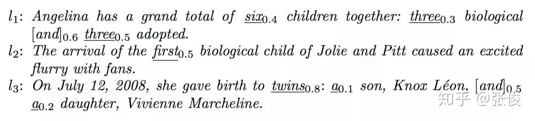 给定 SP 对 <AngelinaJolie, hasChild>,计数量词的识别结果如下: