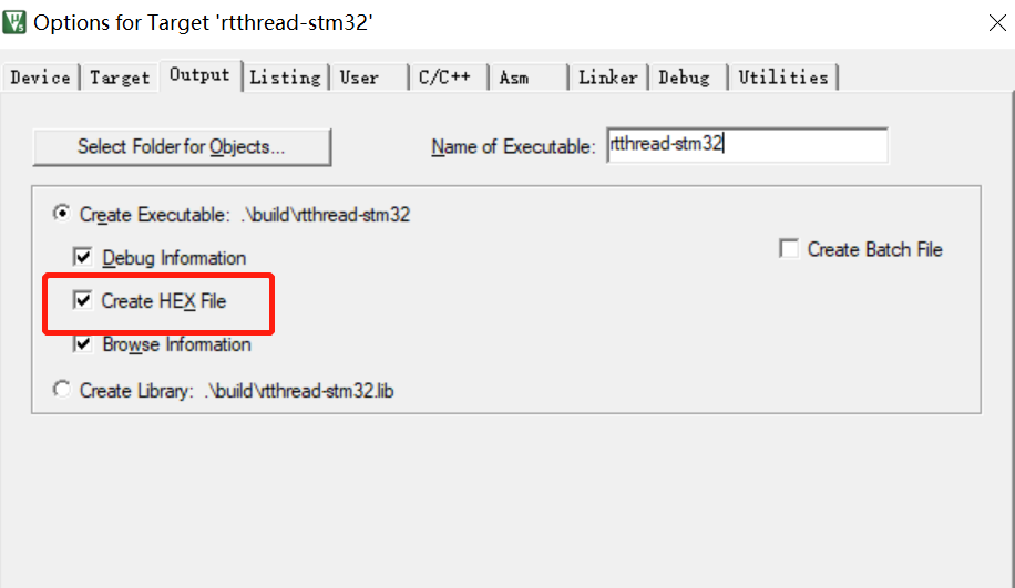 勾选这个只是为了让工程生成一个 HEX 文件,方便我们做测试,在实际 HEX 文件下载过程中,不需要勾选这个。