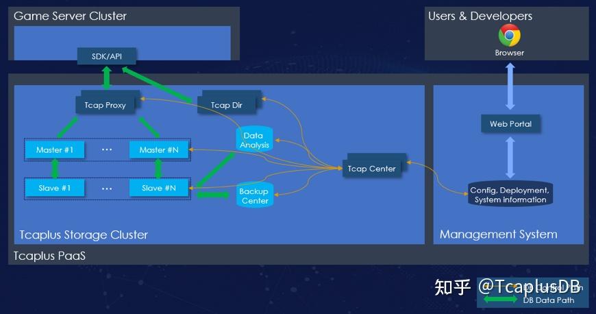 TcaplusDB是专为游戏设计的分布式 NoSQL 数据库,作为腾讯云的数据库服务的一部分为广大客户提供极致的游戏数据体验。目前已为《王者荣耀》、《穿越火线》、《火影忍者》等千万级 DAU 大作提供了稳定的数据存储服务,依托腾讯云遍布全球五大洲(亚洲、欧洲、北美洲、南美洲、大洋洲)的基础设备服务节点,游戏开发商只需接入一次,便可方便全球游戏用户体验。具体产品详情请参考官网链接。
