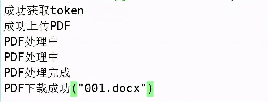 注意:convertPDF函数有两个参数,第一个为需要转换的PDF,第二个参数为转换后的目录。 run一下,一键入魂,".docx"文件已经躺在了我的目录中,舒服了~