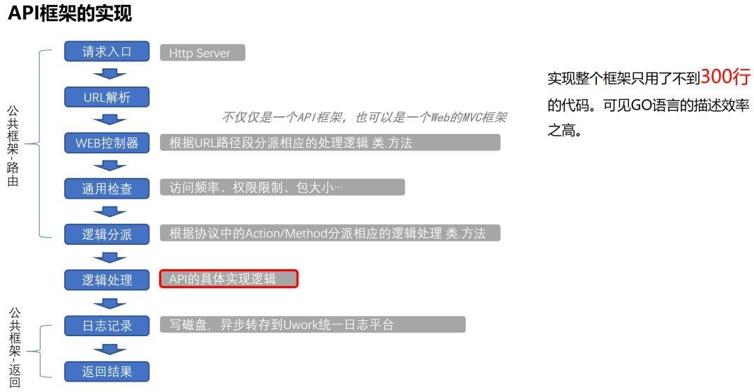 - 执行性能 缩短API的响应时长,解决批量请求访问超时的问题。在Uwork的业务场景下,一次API批量请求,往往会涉及对另外接口服务的多次调用,而在之前的PHP实现模式下,要做到并行调用是非常困难的,串行处理却不能从根本上提高处理性能。而GO语言不一样,通过协程可以方便的实现API的并行处理,达到处理效率的最大化。 依赖Golang的高性能HTTP Server,提升系统吞吐能力,由PHP的数百级别提升到数千里甚至过万级别。