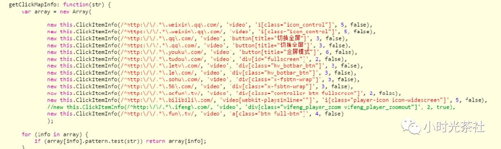 之前我们发现x5插入了一段js来劫持视频的全屏的事件