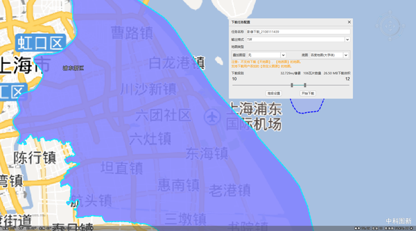 10.下载完后。同样的级别,下载一张用方框框选的地图,像这样的范围,把浦东新区框在中间。(有什么作用呢?主要是下面用的着)下载方法和上面一致,不赘述。