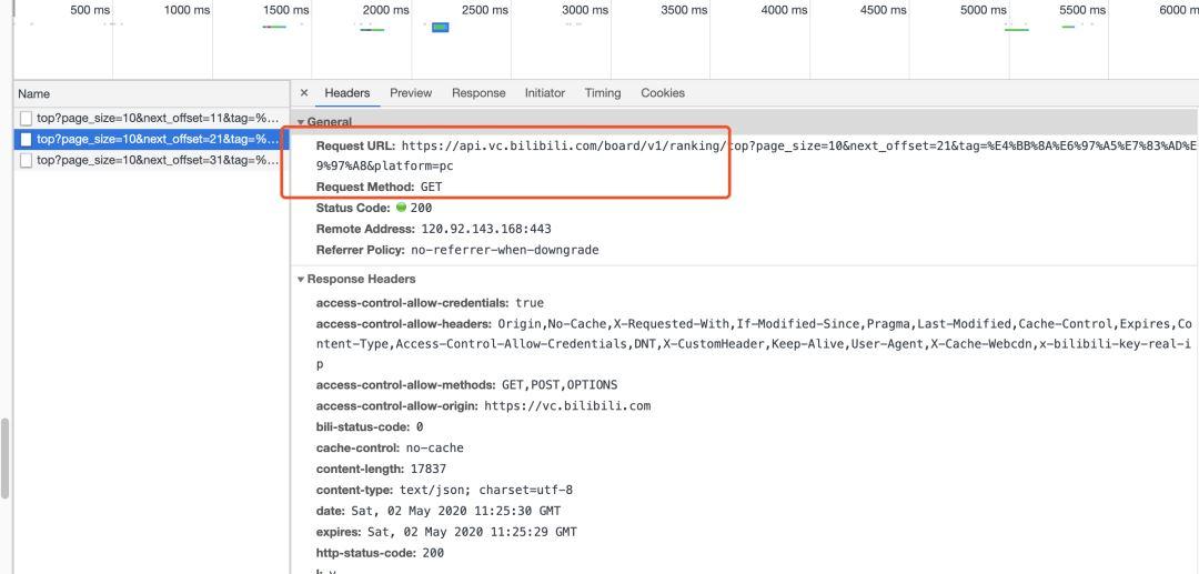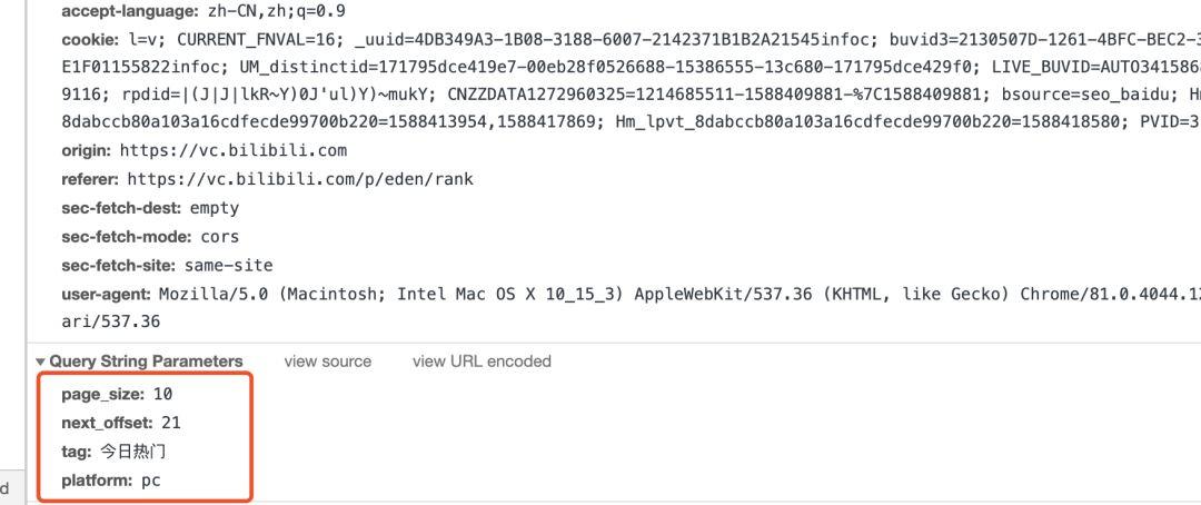我们可以看到Request URL这个属性值,我们向下滑动加载视频的过程中,发现只有这段url是不变的。next_offset 会一直变化,我们可以猜测,这个可能就是获取下一个视频序号,我们只需要把这部分参数取出来,把 next_offset 写成变量值,用 JSON 的格式返回到目标网页即可。