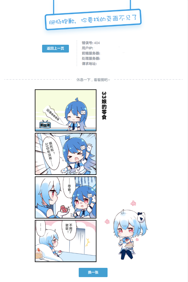 Bilibili 作为二次元用户的聚集地,它的 404 页面也充满了二次元风格。主页面是谐音版的“非常抱歉”,下面这是 B 站吉祥物 2233 娘的漫画。