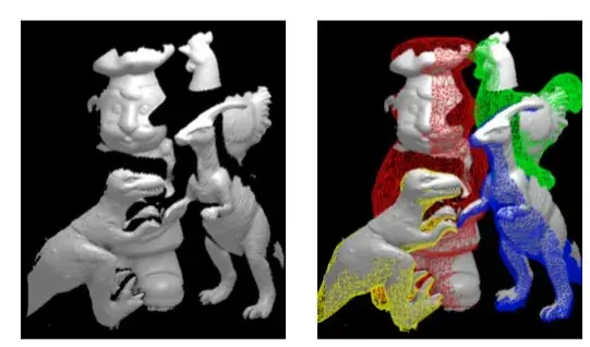 Drost的方法很快得到了广泛的关注,Choi等人在2012年对PPF进行了改进,将传统的四维几何点对特征扩充了颜色信息,得到CPPF这么一个十维特征描述子(两点各增加了RGB信息)。在彩色数据集上获得了比原始PPF更好的效果。