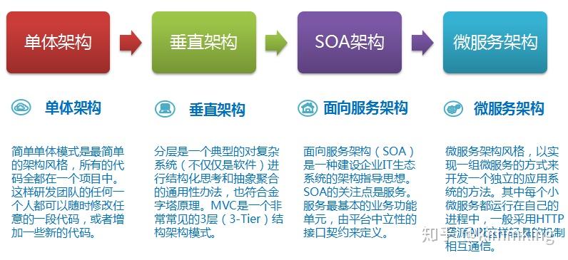 随着IT技术逐渐成为各行各业的基础性支撑技术之一,并且很多大型公司内部的IT系统规模越来越大,传统架构思想的不足越来越明显。针对如何更好的利用企业内部的各个IT系统能力,解决数据孤岛问题,整合业务功能,先是出现了企业应用集成(Enterprise Application Integration,EAI)解决方案,即通过对现有各系统的数据接口改造,实现系统互通(特别是异构系统),这样不同系统的数据就可以被整合到一起了。在大量的EAI项目实施的基础上,架构设计关注的不仅仅是单个的项目,而是企业的整个IT系统集合。架构师们以超越单体架构的分布式思想和业务服务能力的角度来看待问题,这样面向服务架构即SOA就发展起来了。