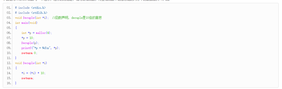 下面使用 malloc 函数写一个程序,程序的功能是:调用被调函数,将主调函数中动态分配的内存中的数据放大 10 倍。