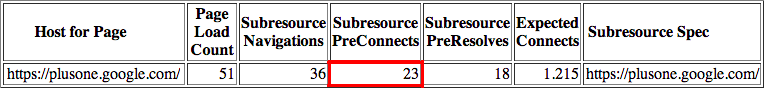 访问chrome://dns并检索你profile对应的热门站点主机名,可以查看Chrome所保存下来的子资源主机名。在上面的例子中,你可以看到Chrome记录了Google+的6个子资源主机名,还统计了DNS预解析触发或TCP预连接执行的次数,还有会由各项处理的请求的估计值。这些内部记录帮助Chrome预测器实现优化。