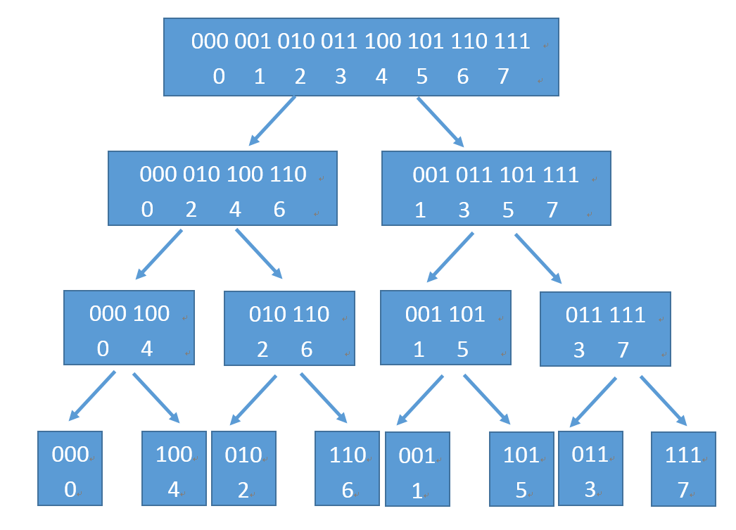 观察到每一个位置的数其实都是原来位置上的数的二进制后 位