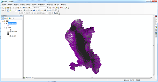地形下载完成后加载到arcgis中,开始提取等高线操作: