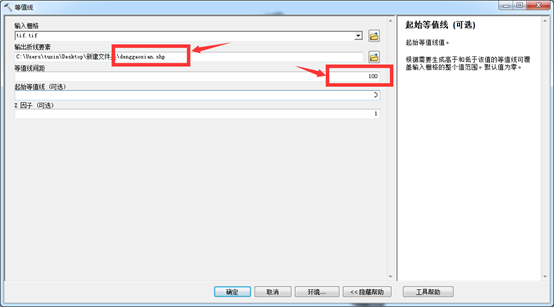 打开arctoolbox->3d analyst工具->栅格表面->等高线功能弹出下图对话框: