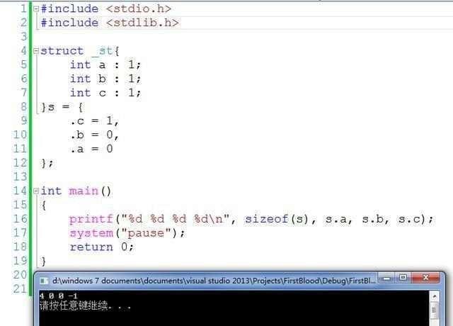 A) 在结构体的初始化时,可以指定域进行初始化,如例子中的.c = 1,顺序可以颠倒,这样做的好处就是可读性较强,对于大结构的初始化,在阅读时很方便。缺点就是低版本的编译器可能不支持。